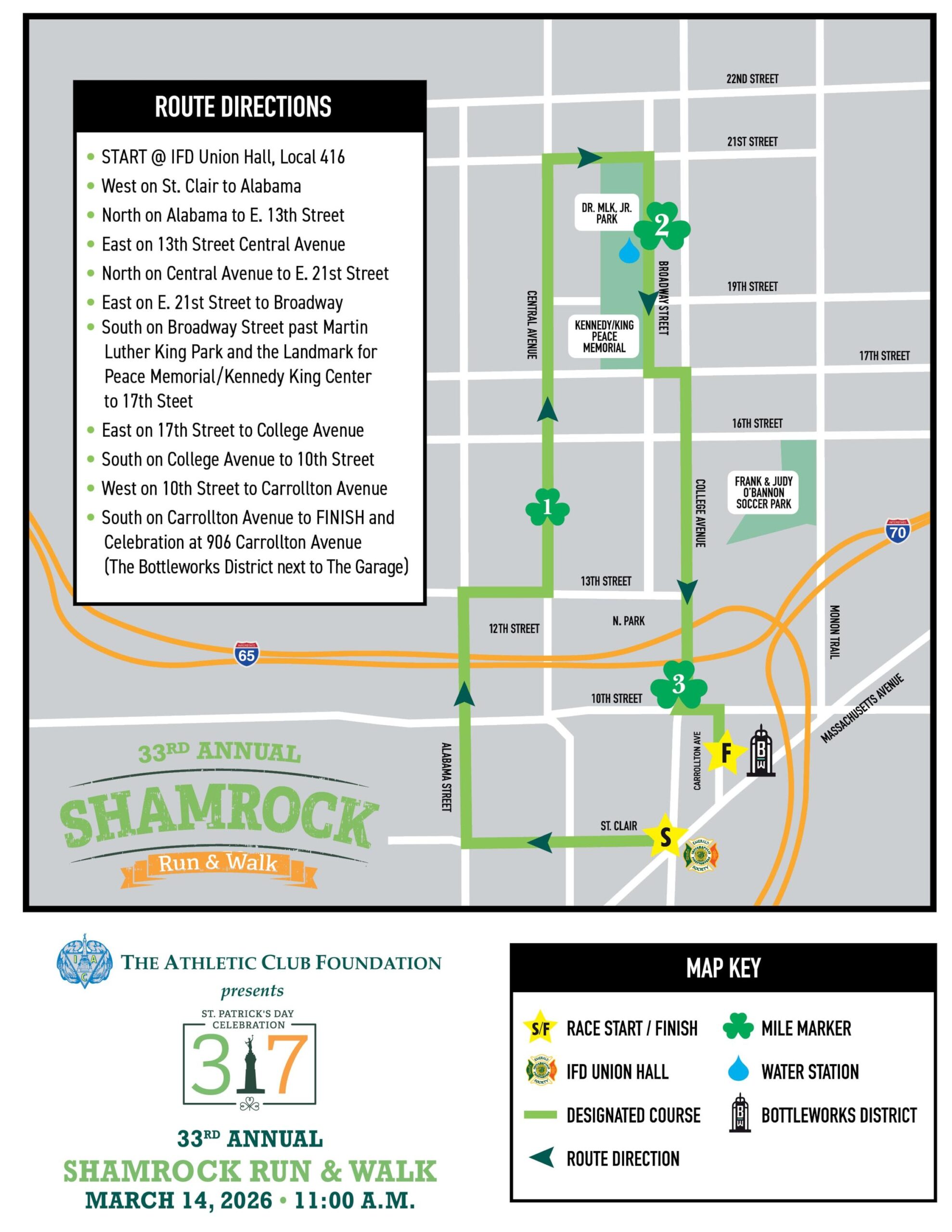 - NEW: The following partial closures will be in effect on March 14 from 11AM to 12:30PM for the 33rd Annual Shamrock Run & Walk.