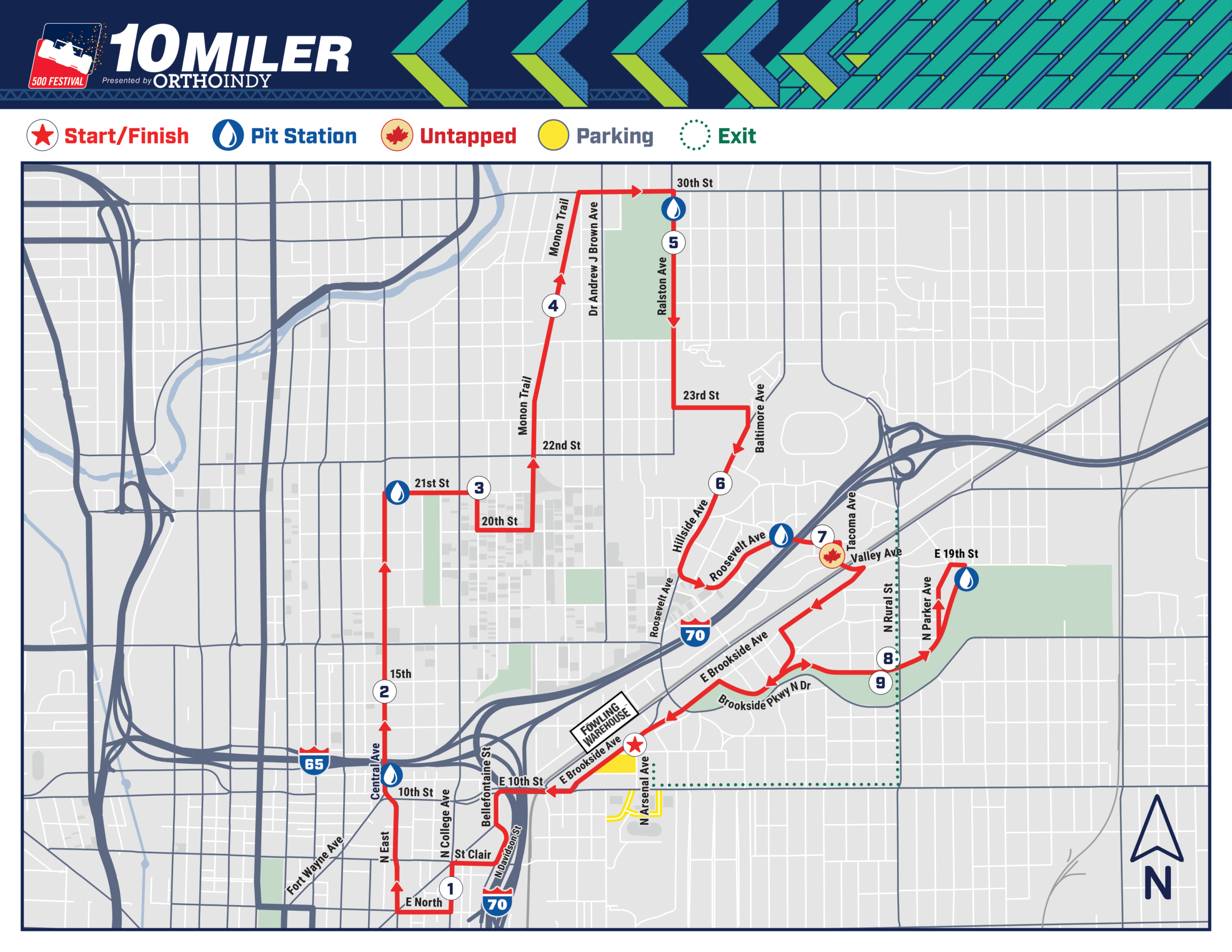 - 10th Street from the Monon Trail to Carrollton Avenue.
