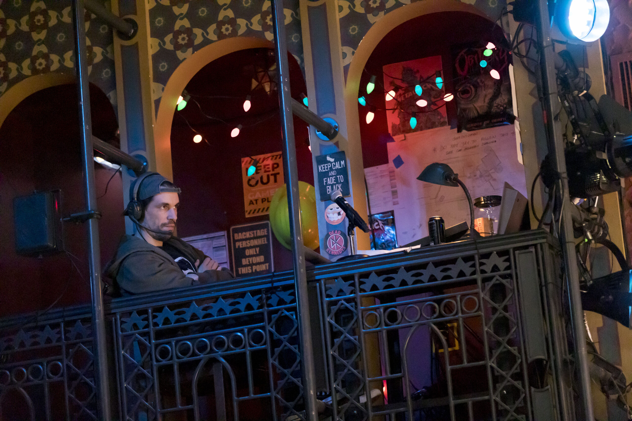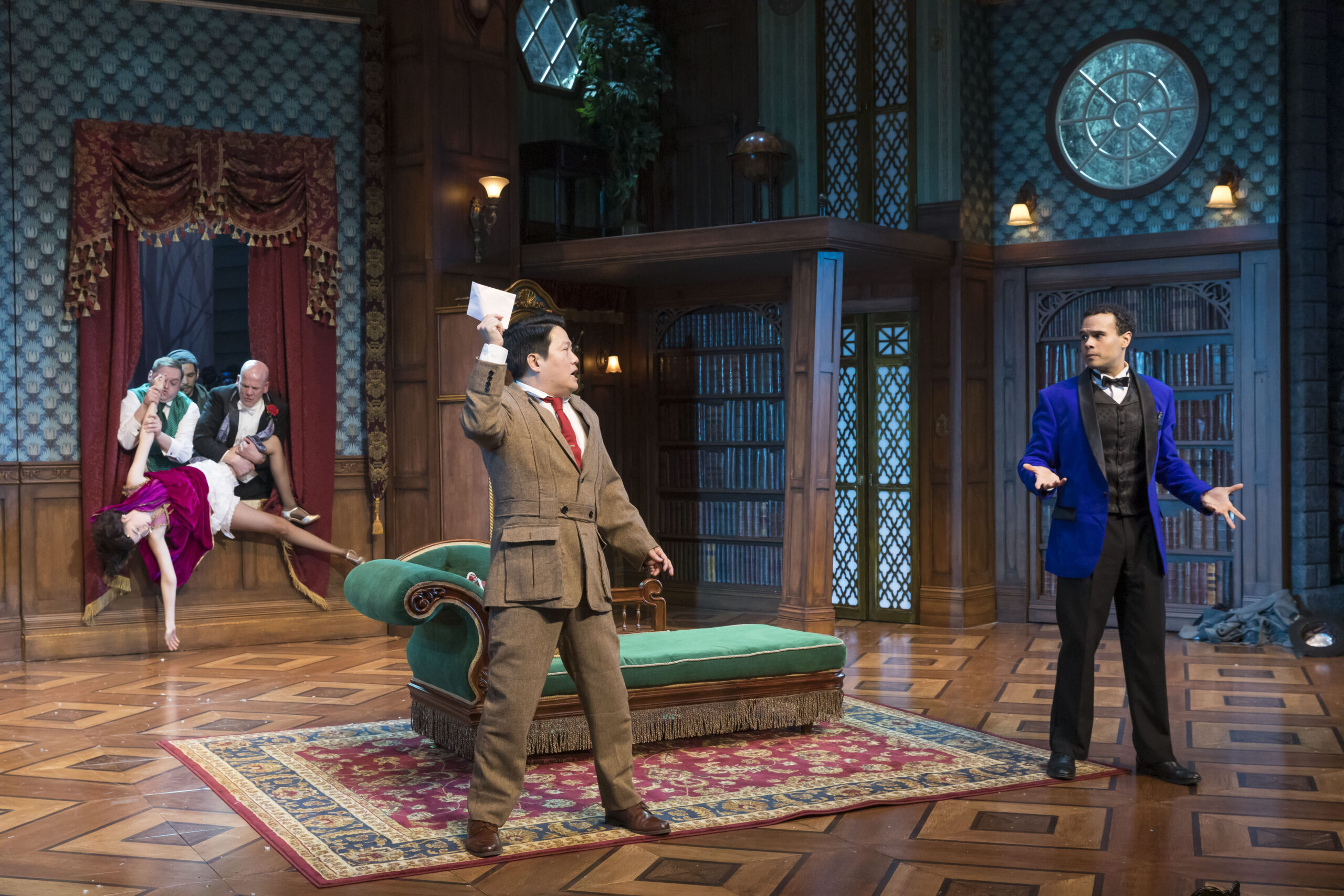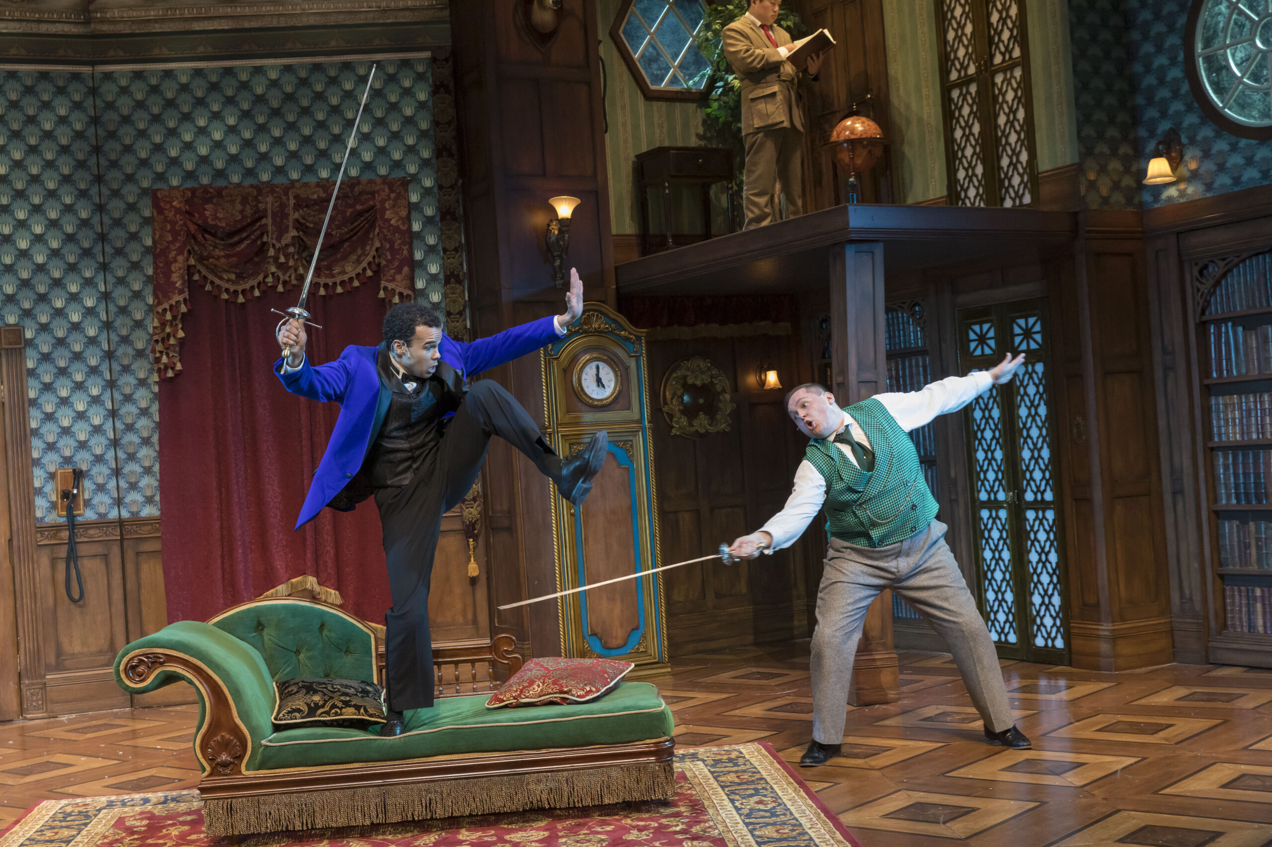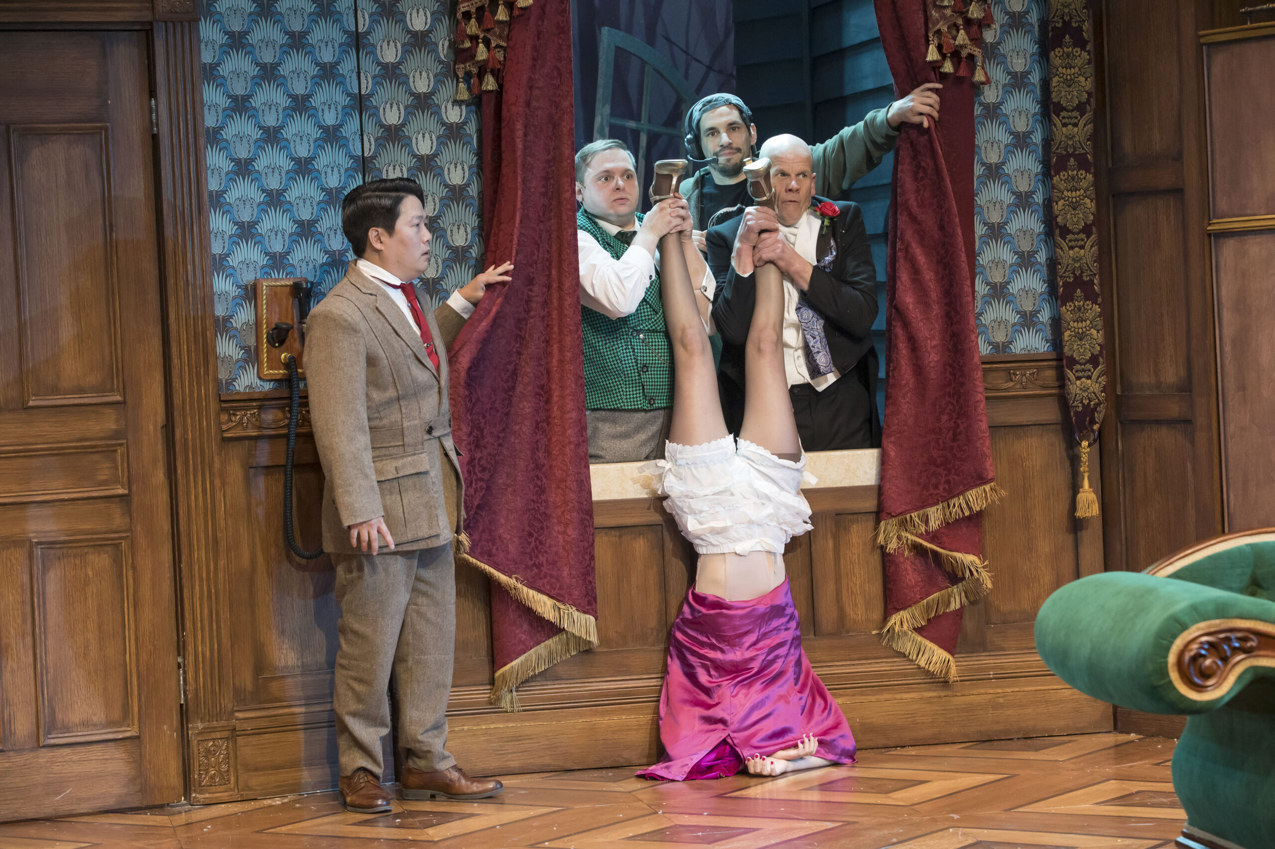 While there’s no pre-show chat before the performance of The Play That Goes Wrong, get to your seats 15-minutes before show time to engage with cast and crew interacting with patrons before the show.